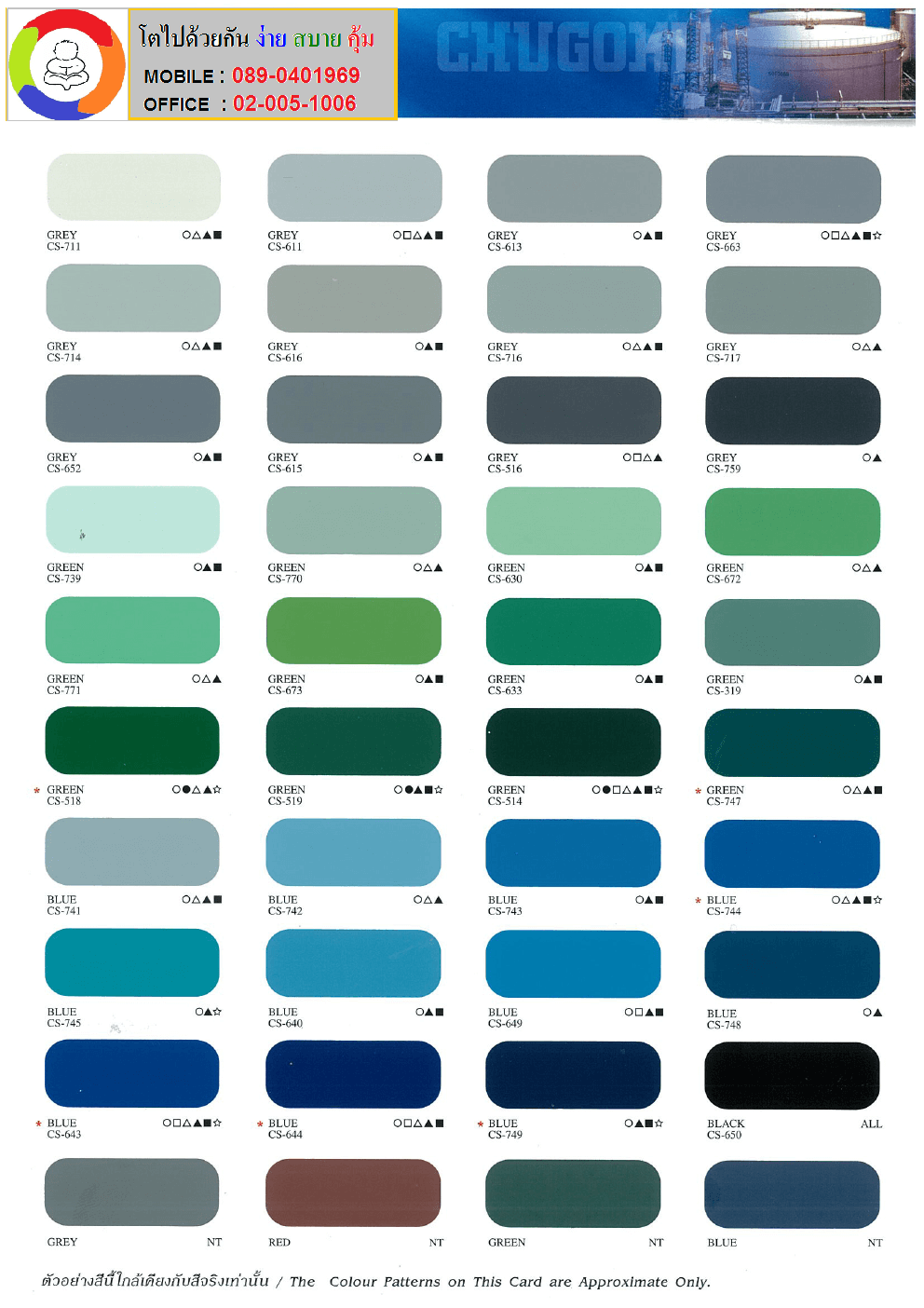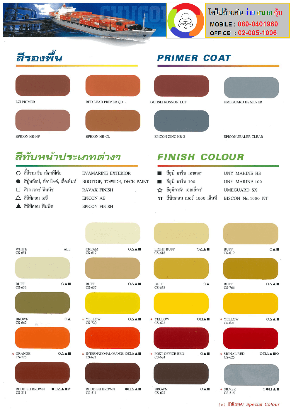 รายละเอียดสินค้าสีชูโกกุ อิพิคอน ฟินนิช เฉดพิเศษสีทับหน้าในระบบ อิพิคอน ซึ่งให้ความคงทนและการยึดเกาะที่ดีเยี่ยม ทนทานต่อน้ำ, น้ำมัน และสารละลายต่างๆ ได้ดีเยี่ยม เหมาะสำหรับภายในและภายนอกงานโครงสร้างเรือ สะพาน และโครงสร้างเหล็กอื่นๆเฉดสี สามารถดูได้จากรูปแคตตาล๊อกที่แนบมา สังเกตุ ใต้รูป หากมีดาวสีแดงคือเฉดพิเศษ หากไม่มีดาวสีแดงคือ เฉดธรรมดา ลูกค้าเลือกเฉดสีอะไร สามารถโทรหรือไลน์มาระบุเฉดได้ทินเนอร์ : CMP – 31สีชั้นก่อนทาสีนี้ : อิพิคอน เอชบี-ซีแอล, อิพิคอน อันเดอร์โค้ท, อื่นๆ *** ถ้ามีจำนวนขอราคาพิเศษ ติดต่อเราได้เลย****1 แกลลอน = 3.785 ลิตร, 1 ถัง = 15.14 ลิตร ![]() ![]() ![]() เงื่อนไขอื่นๆChugoku EPICON FINISHFinish coat of Epoxy resin, has excellent durability, adhesion property, toughness, impact and abrasion resistance, resistance of sea water, water, oil and chemical. It’s a protective finish coat for steel ships, bridges and other steel structure. Thinner : CMP – 31 ![]() ![]() ![]() |